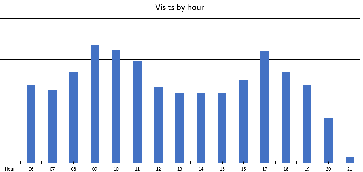 The data below shoes average visits by hour and was collected on the 24th Feb 26.