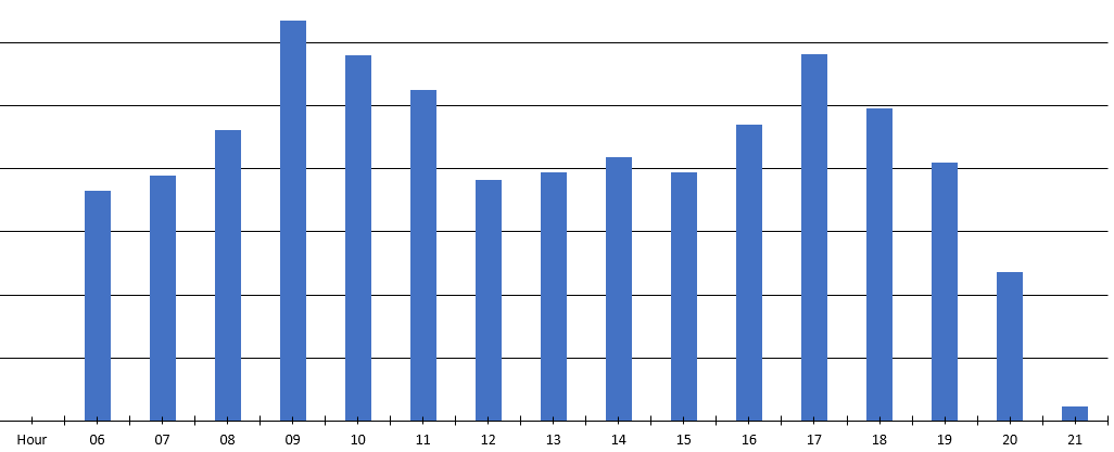 The data below shoes average visits by hour and was collected on the 28th Jan 26.